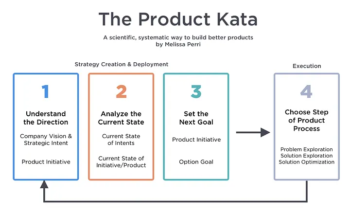 The practice of delivering against customer needs is most notably highlighted in Perri’s Product Kata. The Product Kata is the process by which we uncover the right solutions to build. It’s a systematic way that teaches product managers to approach building products from a problem-solving standpoint. The Product Kata helps product people form incredibly impactful habits. Doing it over and over again, exactly like a martial arts kata, ingrains the process in your brain. It’s an adapted version of the Toyota KATA, a PDCA cycle tailored to Product Management.